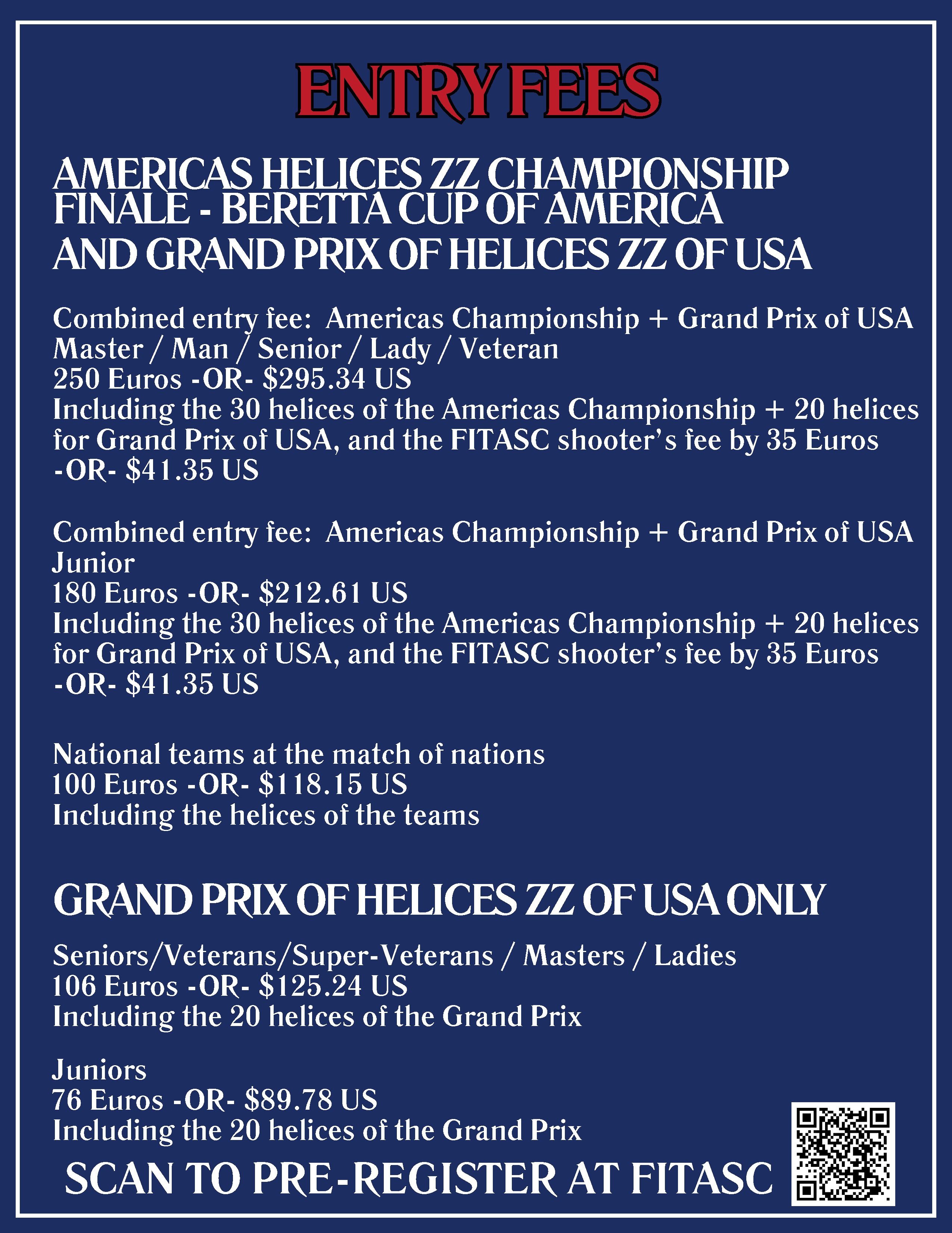 En cliquant sur l'onglet "inscription" du Championnat des Amériques d'Hélices ZZ, vous vous inscrivez au Championnat des Amériques d'Hélices ZZ (23 - 24 mai 2026, 30 hélices) et au Grand Prix d'Hélices ZZ (21 - 22 mai 2026, 20 hélices), au prix combiné de 250euros (180€ pour les juniors).