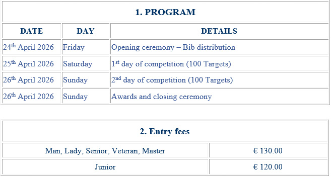 Non EEC resident shooters must apply for a gun import permit. They must send the following information to the international department of FITAV: